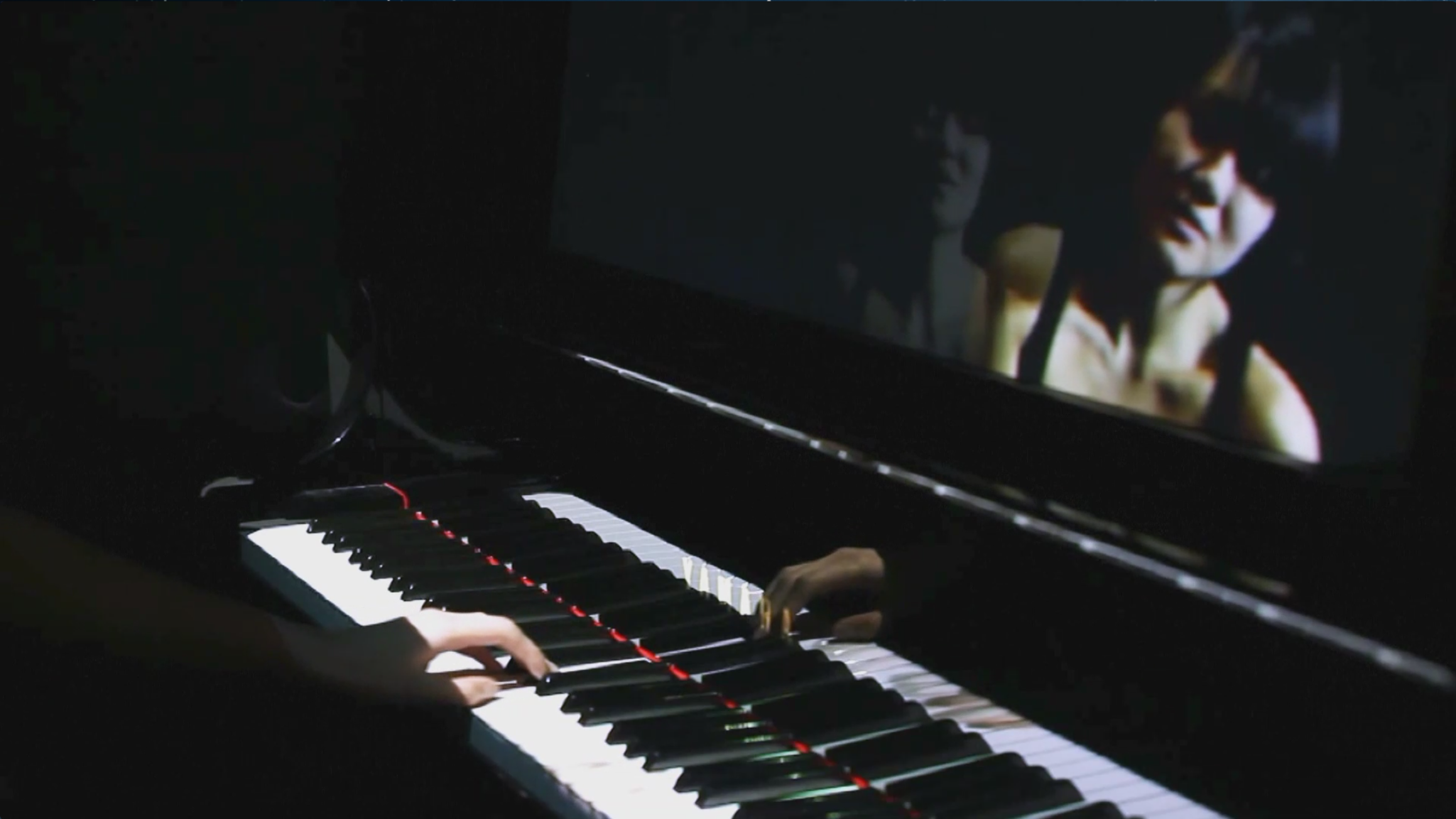 Live music emanates from a grand piano, whose keys move under the supple touch of a pianists's hands reflected on the lacquered surface of the instrument. On the music stand is visible a "reflection" of the pianist's face, whose subtle expressions project emotions of the music. MirrorFugue recreates the feeling of a live performance, but nobody is actually there. The pianist is but an illusion of light and mirrors, a ghost at once present and absent.
