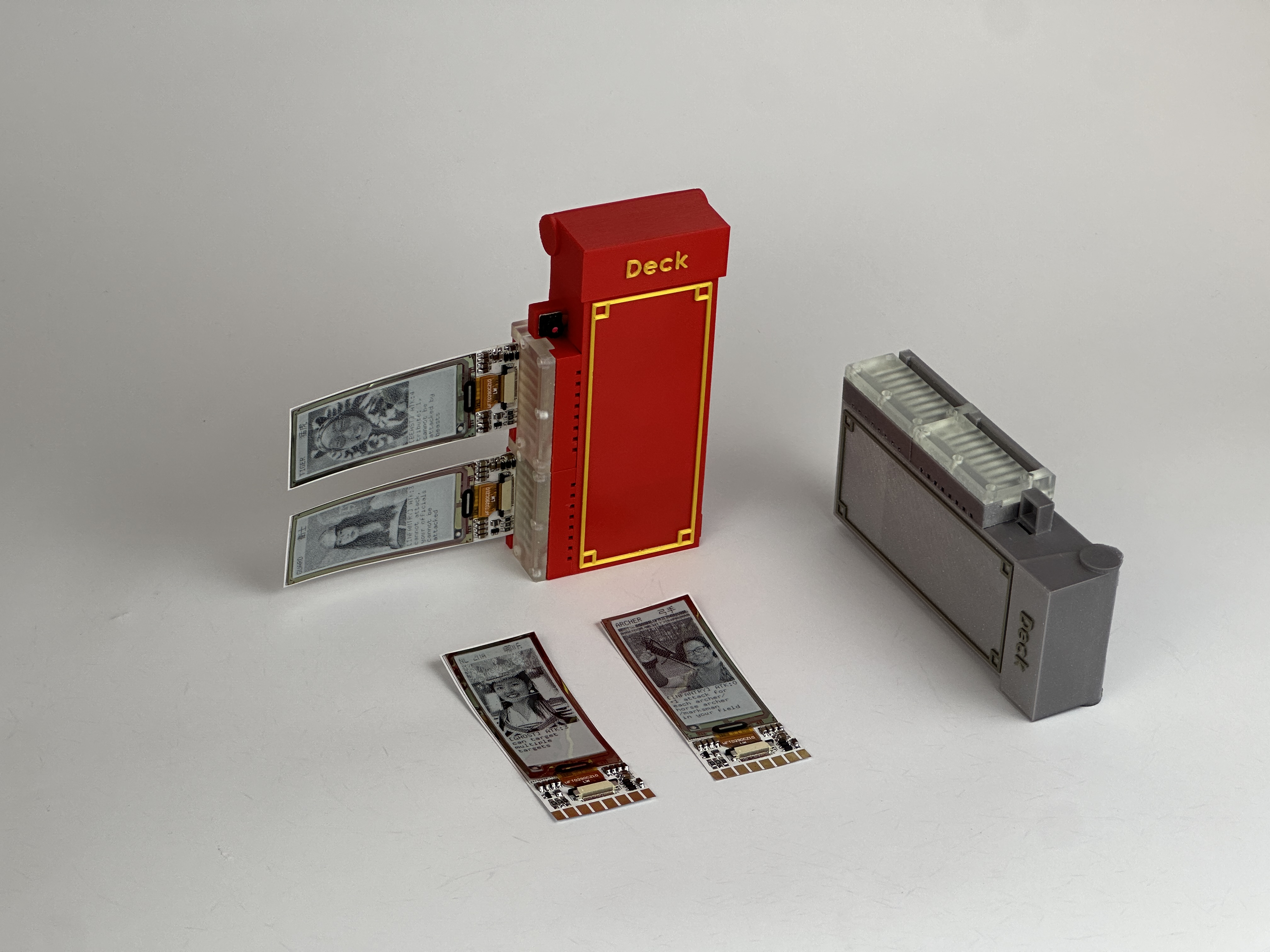 Modern children’s entertainment has shifted increasingly into the digital realm. Growing up during this transition, our team draws on our own childhood experiences of physical, social play to design systems that preserve an essential human experience: playing face-to-face with friends. We chose card games, particularly Collectible Card Games, because they nurture strategic thinking, shape personal identity, and foster in-person connection through tangible gestures like holding, trading, and slamming cards onto the table. These moments, built on touch, eye contact, shared anticipation, and the unspoken language of play, are foundational to empathy, cooperation, and emotional resilience. Yet in an era of smartphones, social media, and online gaming, such human moments are disappearing. We believe children’s entertainment is not trivial; it is a cultural and developmental foundation that shapes who we become. Technology should extend physical interactions, not replace them. With the emergence of AI, we can now infuse the dynamism of computation into embodied, tangible forms. Motivated by this, we developed Pocket Ink, a card game platform that merges AI’s adaptability and personalization with the tactile richness of traditional play. Using flexible e-ink displays, each card can dynamically change its content, allowing a single deck to host countless games and stories. While traditional cards are simple and affordable, they cannot match the customization and interactivity of modern digital media. Without innovation, physical play risks losing children’s attention entirely. Pocket Ink counters this by embedding advanced technology into a tangible, socially engaging form—retaining the presence, haptics, and social rituals of cardboard cards while adding AI-powered personalization, evolving narratives, and adaptive play styles. By re-centering play in the physical world, we aim to preserve the face-to-face interactions, shared emotions, and cultural bonds that keep us human. We envision a generation that is not only digitally connected, but deeply connected to one another through moments of real, present, human play